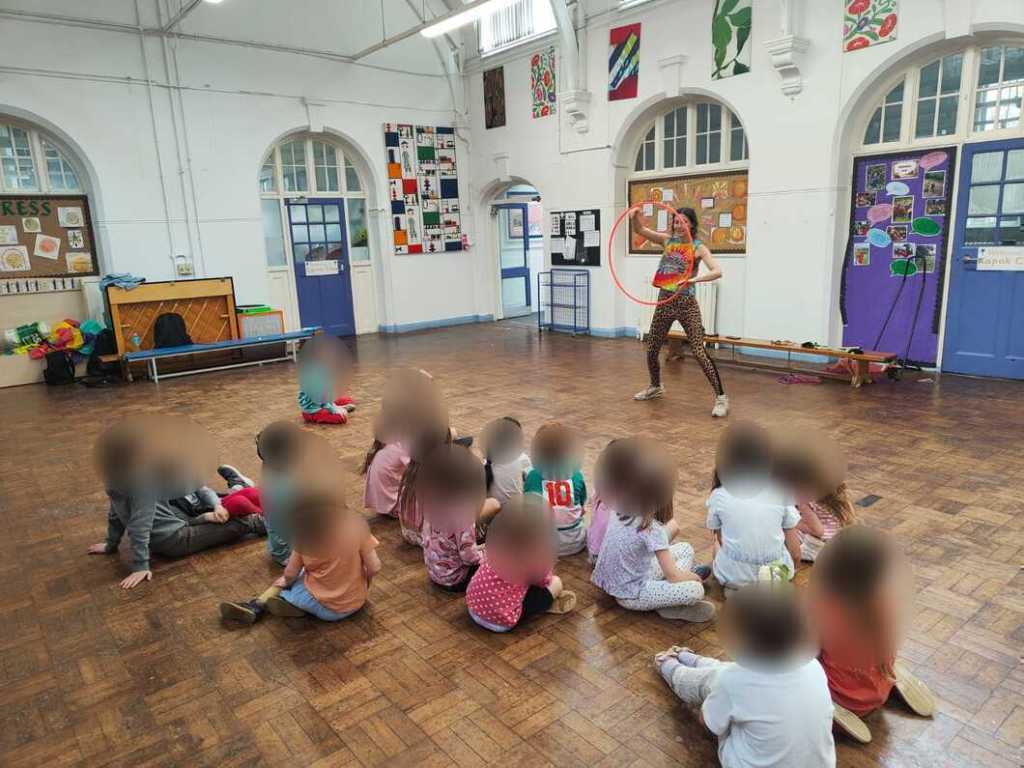 I teach hulahoop and circus skills after school clubs in primary and secondary schools across Bristol. These sessions are a mixture of movement-based games and learning beginner friendly skills with circus equipment. Each skill is broken down into bite-sized steps, to ensure every child achieves and builds confidence.
